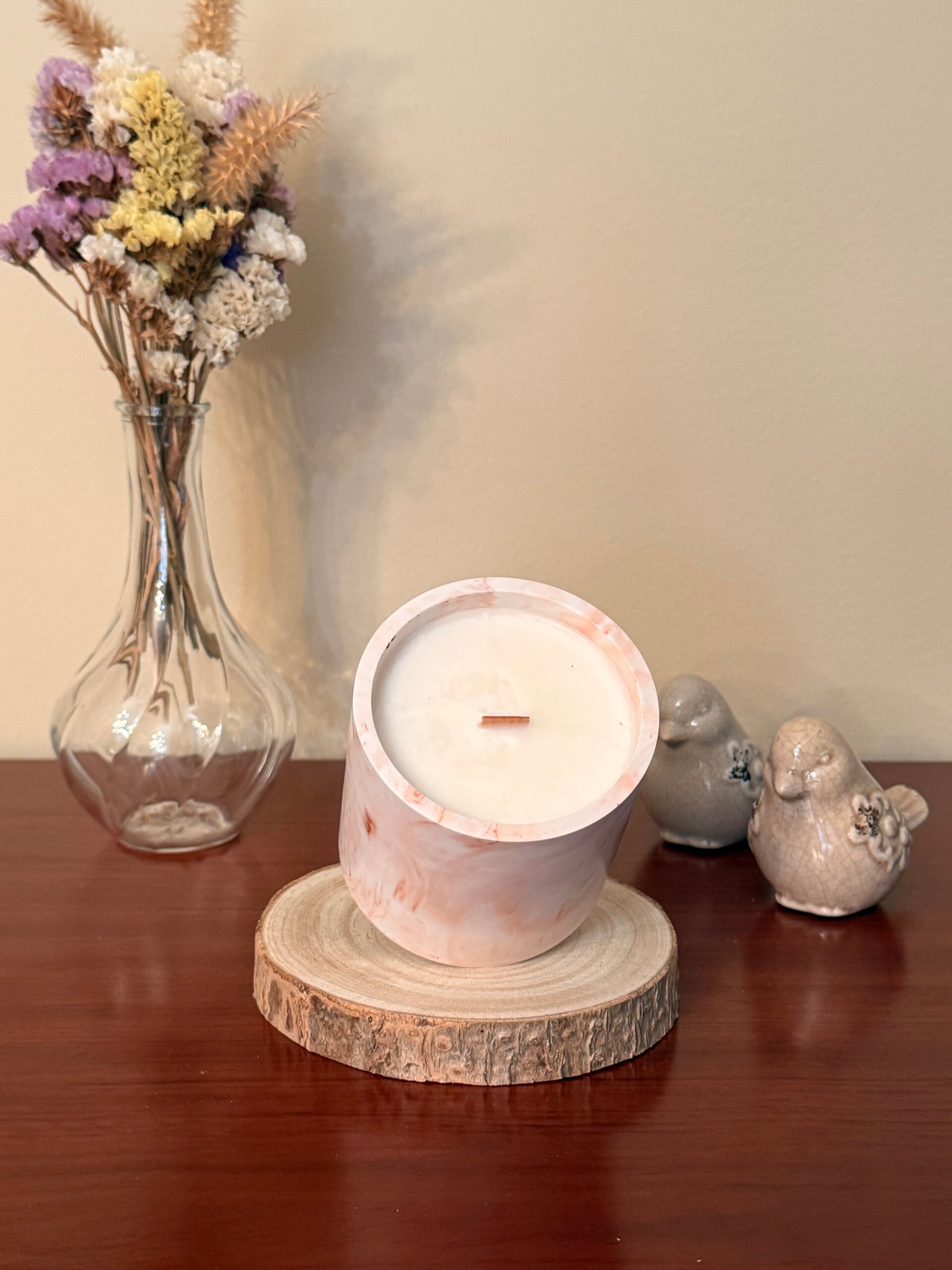 As nossas velas são produzidas artesanalmente, pelo que pequenas variações de cor, aroma ou pequenas imperfeições podem ocorrer, cada peça é única e especial.